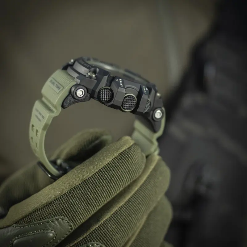 M-Tac годинник тактичний мультифункціональний оснащується міцним витривалим корпусом, який виготовлений з полікарбонату + ободок з міцної нержавіючої сталі. Скло з органічного полікарбонату, яке без проблем протистоїть появі подряпин і відколів. Водостійкість 3 АТМ.