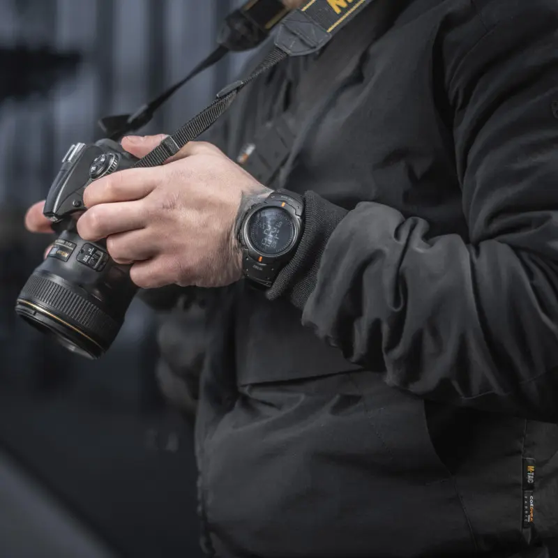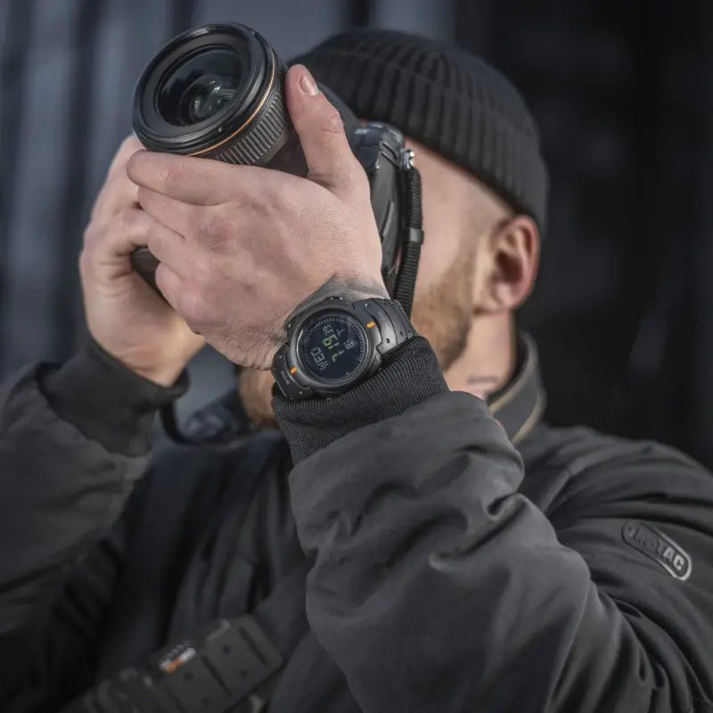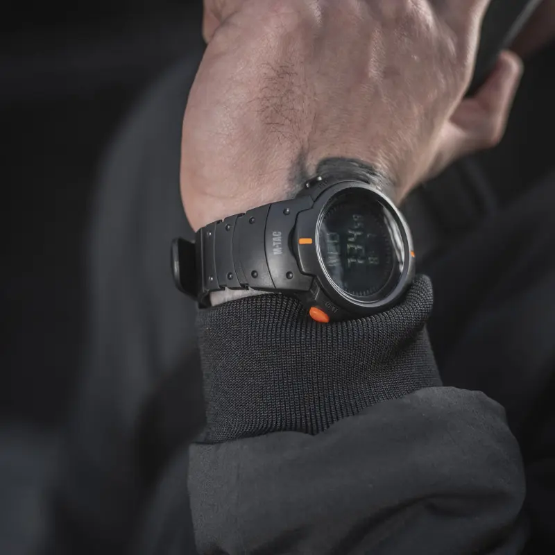 M-Tac годинник тактичний з компасом стане відмінним вибором тим, хто завжди звик бути в центрі подій. Ранкова пробіжка, похід, екстремальні види спорту - в будь-якій, навіть самій складній ситуації. Зручні і практичні, вони водонепроникні, забезпечені зручним пластиковим ремінцем і секундоміром для максимально точного визначення часу. Основною фішкою цього годинника є наявність електронного компаса, який не дасть заблукати своєму власникові.