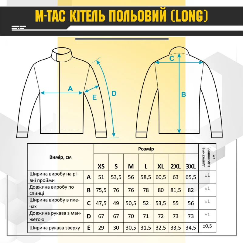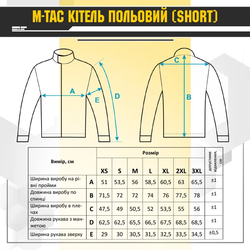 Особливості: | - Пошитий з тканини ріп-стоп: 50% бавовна, 50% поліестер. - Комір-стійка закривається на центральну блискавку, прикриту планкою на липучці. - Зручний доступ в нагрудні кишені, залишає можливість дістатися до їх вмісту, навіть коли поверх кітеля надіто тактичне спорядження. - Велкро-панелі на грудях і рукавах для кріплення патчів та ідентифікаторів. |