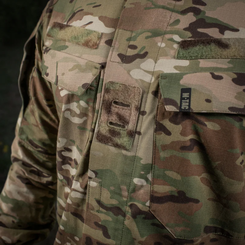 - Велкро панелі на грудях і рукавах для кріплення патчів та ідентифікаторів.