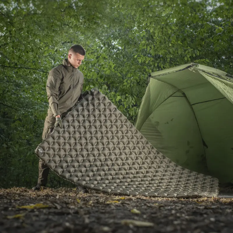 Каремат надувний M-Tac являє собою одну з найлегших і компактних моделей на ринку. Має анатомічну форму і призначений для максимально комфортного сну. Володіє підвищеною товщиною, тому ви можете забути про такі неприємності як дрібне каміння, гілки та будь-які інші нерівності на землі. Також, за рахунок своєї щільності, не пропускає холод, що йде від землі. Завдяки своїй конструкції каремат добре тримає людину і відмінно виконує функції теплоізоляції і амортизації. Легко згортається і забезпечений чохлом для зручності транспортування. Компактний розмір і вага дозволяють використовувати каремат в довгих піших походах, в гірських сходженнях і велотурах.