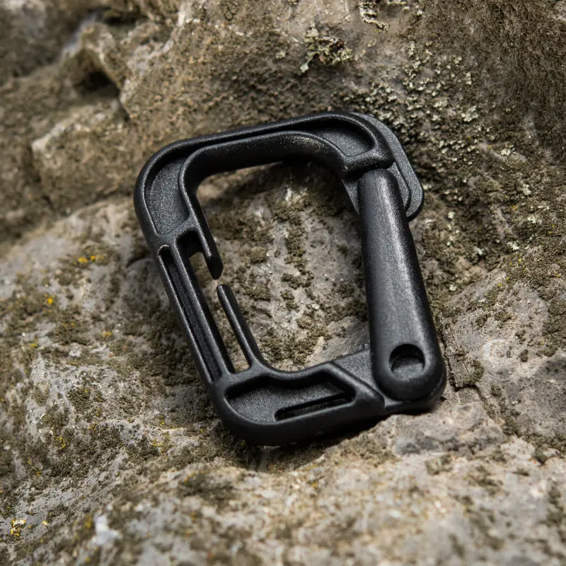 Карабины Grimlock можно использовать как для внешнего крепления предметов (на рюкзак, разрузку или поясной ременьпетлю брюк), так и для внутреннего (закрепить емкость или шланг гидратора внутри рюкзака, прикрепить провод рации и др.). Легкий пластиковый Grimlock экономит вес, переносимый на себе, облегчая поклажу. И дает возможность снять ее при необходимости. При этом шансы сломать карабин под весом снаряжения небольшие, поскольку основная нагрузка приходится не на подвижную часть и пружину.