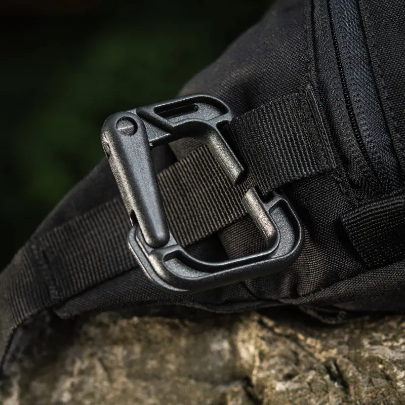 Основное назначение карабина типа Grimloc – создание дополнительных подвесных мест на экипировке. Он прекрасно подойдет как для внешнего крепления предметов (на рюкзак, плечевые лямки, тактический пояспетлю брюк), так и для внутреннего (крепление шланга гидратора, провода рации внутри рюкзака).
