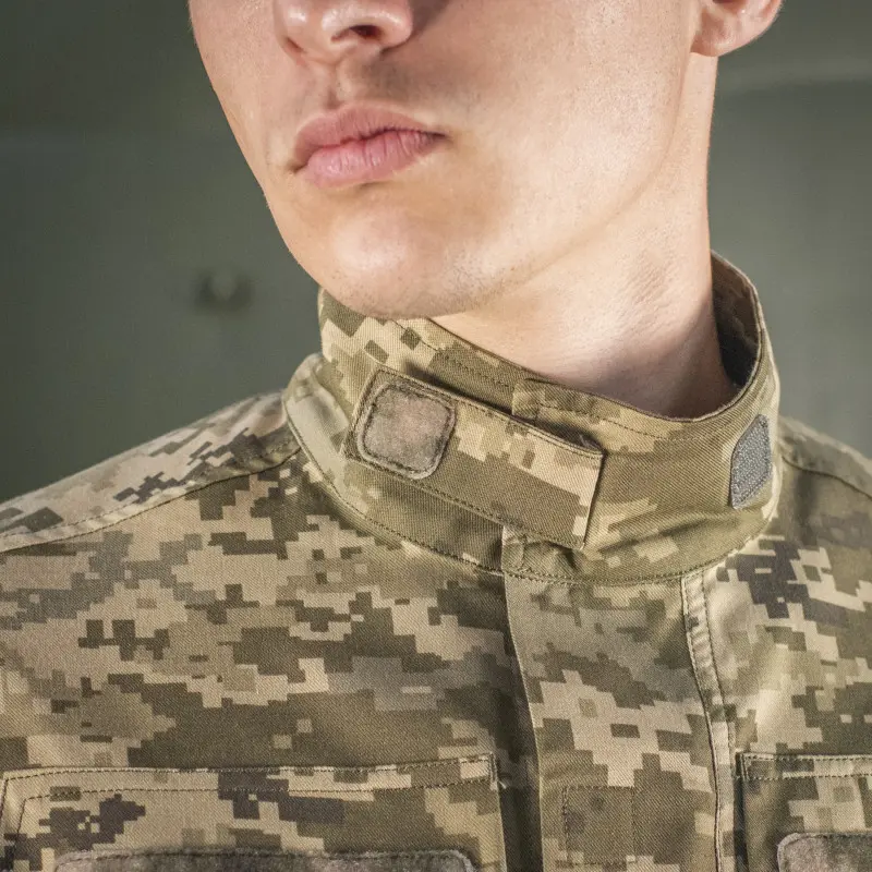 Кітель в паттерні "ММ-14" - це вдосконалена фахівцями М-Тас модель статутного кітеля ВСУ. Пошитий з легкої тканини ріп-стоп: 50% бавовна, 50% поліестер. Оптимальне поєднання стійкості до зношування і повітропроникності. Саме такої якості тканина йде на пошиття уніформи для військових у Британії.