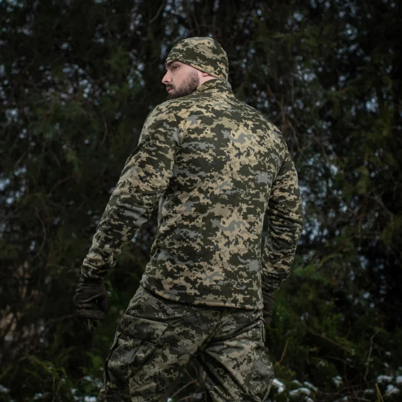 Виготовлена зі зносостійкого флісу (100% поліестер) щільністю 260г/м2. Це високоякісний матеріал, що має відмінні зігріваючі та антипілінгові властивості. Він приємний до тіла та добре зберігає тепло.