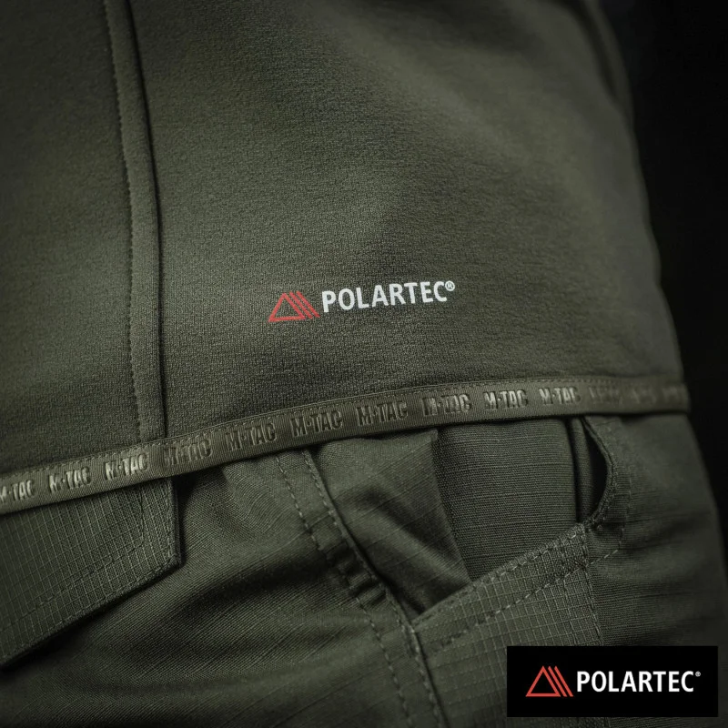 Виготовлена з преміального флісу Power Stretch Pro (поліестер, нейлон, еластан) від всесвітньо відомої компанії Polartec®. Цей зносостійкий матеріал має відмінні зігріваючі та антипілінгові властивості. Дана тканина надає виробу особливої міцності, тоді як щільний ворс із внутрішньої сторони приємний на дотик та забезпечує теплозахист і циркуляцію повітря.