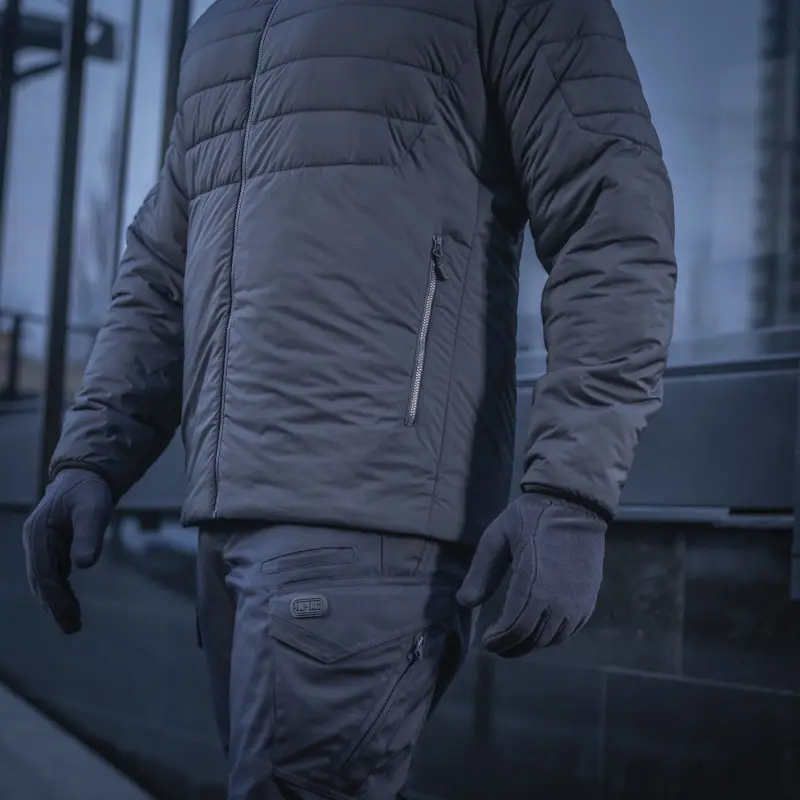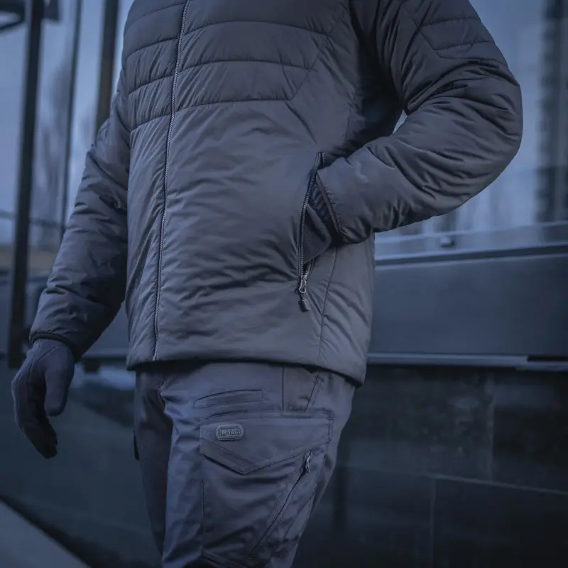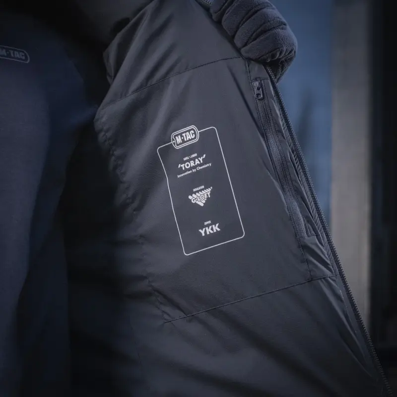 Пошита з легкої, дихаючої нейлонової тканини з водовідштовхующим просоченням від японської компанії Torаy. Куртка утеплена інноваційним австрійським утеплювачем G-Loft щільністю 100г / м2, що має високі теплоізоляційні властивості і легко випаровує вологу при намоканні. Також даний матеріал органічно поєднує в собі мякість пуху і міцність синтетичного волокна.