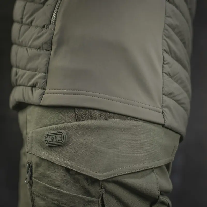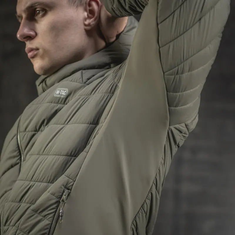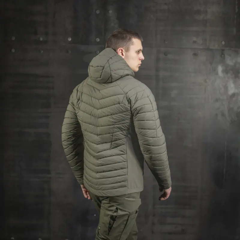 Пошита з дихаючого нейлону Toray mechanical stretch із вставками з еластичного матеріалу біфлекс. Це забезпечує максимальний захист від холоду та вітру. Куртка утеплена інноваційним австрійським наповнювачем G-Loft, що має високі теплоізоляційні властивості та легко випаровує вологу при намоканні. Комір-стійка та вставки з біфлексу утеплені підкладкою з мікрофлісу від всесвітньо відомого італійського бренду Pontetorto.