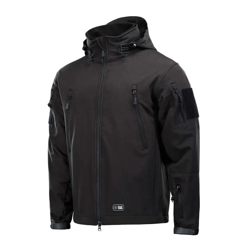 M-TAC куртка Soft Shell з підстібкою виготовлена з мембрани, яка захищає від негоди. У даній моделі виробник додав додатково знімну флісову підстібку, яка кріпиться на блискавці (можна носити як окремий предмет одягу). Усередині тонкий фліс. Динамічний крій не обмежує рухів. Прихований в комірі капюшон має регулювання через кишені на грудях. Має дві ідентифікаційні панелі, які, в залежності від ситуації, можна дістати або заховати. У куртці є одна порожня панель, завдяки якій є можливість вишити або надрукувати потрібні оператору назви. Фахівці бренду M-Tac додали систему, яка дозволить зручно і швидко дістати зброю або інші предмети, котрі знаходяться на поясі. Дана система дозволить одним плавним рухом дістати зброю, електрошокер, або інші аксесуари, що помітно впливає на час реакції в небезпечних випадках. Передня блискавка виготовлена компанією YKK. Блискавка якісна і виконує свою функцію без будь-яких видимих проблем.