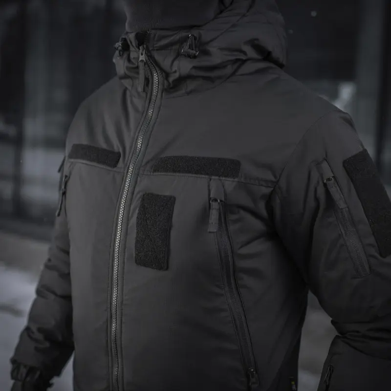 Завдяки сучасним матеріалам та прогресивній конструкції, куртка зовсім не сковує рухів і дозволяє раціонально розмістити всі необхідні речі. Нагрудні кишені спеціально розроблені для зручності використання з плитоносками та бронежилетами, а для додаткового комфорту рук утеплені флісом.