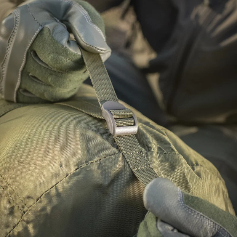 Компресійний транспортний мішок. Матеріал виготовлення — нейлон. Стійкий до намокання. Виконує функцію чохла для зберігання і транспортування спальника. Армійське походження даного виробу стане відмінним рішенням для тих, хто не любить проводити свій вільний час на дивані, вважаючи за краще походи, сплави або ж сходження. Заховані в нього речі будуть залишатися сухими незалежно від примх погоди. А завдяки спеціальним стропам, що зтягуються, можна буде істотно зменшувати об’єм мішка, заощаджуючи місце в рюкзаку під інші необхідні в поході речі.