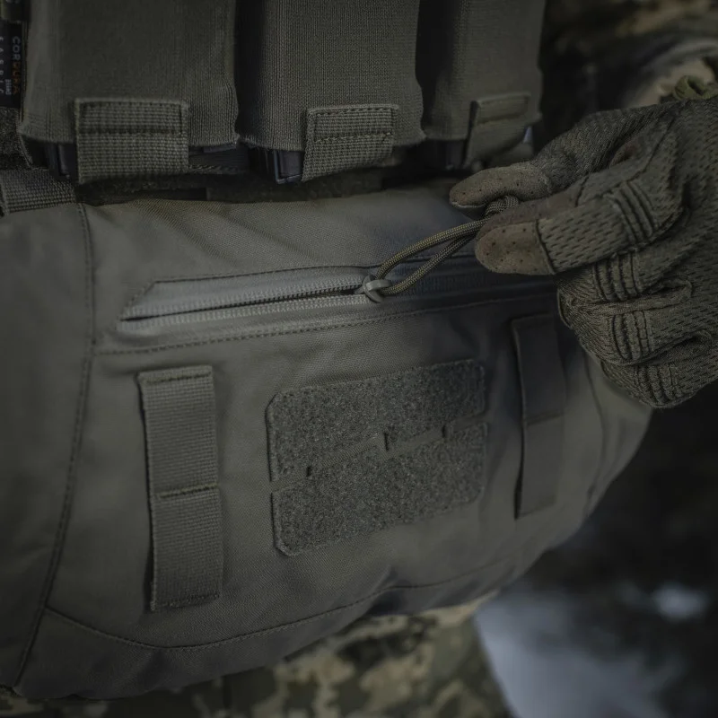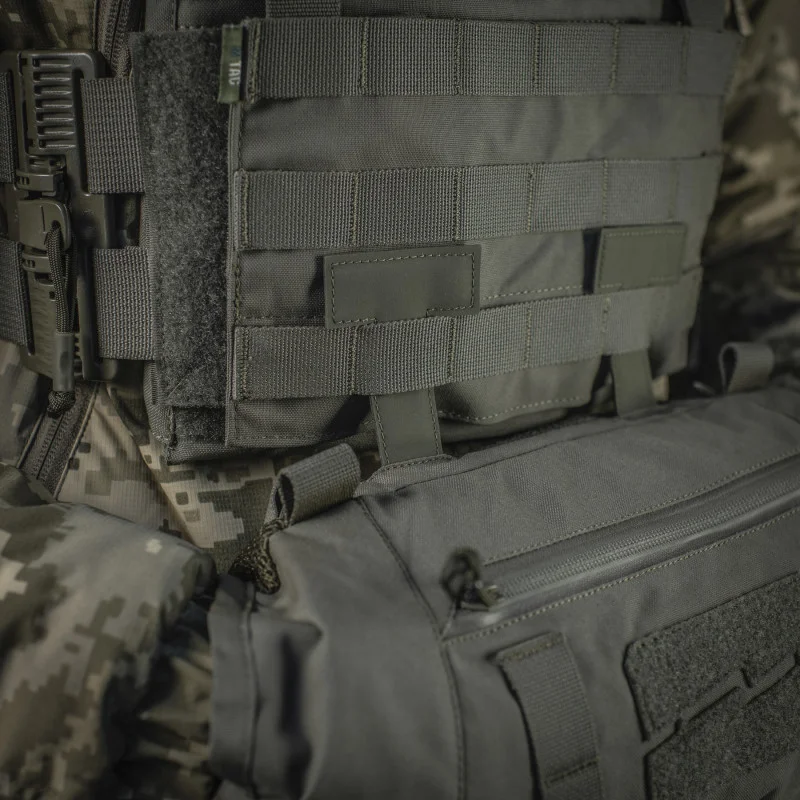 Передня кишеня на вологозахисній блискавці AquaGuard добре підійде для зберігання документів, мобільного телефону, хімсвітла та інших необхідних речей. На фронтальній частині є велкро панель для патчів і стропи MOLLE для кріплення додаткового спорядження.