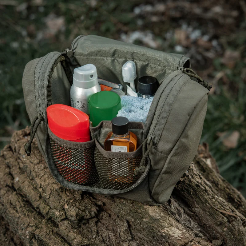 При створенні сумки M-Tac для туалетного приладдя малися на меті кілька цілей. Дана сумка призначена для зберігання різних засобів гігієни та інших дрібниць. Дійсно, це зручний і практичний аксесуар, що дозволяє компактно зберігати бритву, зубну щітку, пасти, креми, шампуні і різні дрібниці. У складеному стані сумка компактна і не займає багато місця, але водночас вона може вмістити в собі все туалетне приладдя, яке може знадобитися солдату. За побажанням покупців в Gen.II форму несесера зробили більш зручною для використання в підвішеному стані. Бортик вище, що добре утримує навіть великі флакони. Бічні окремі кишені дозволяють зручніше організувати речі в несесері