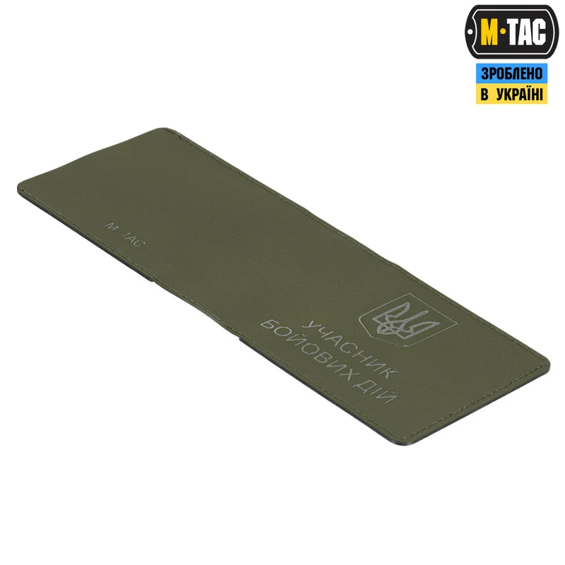 Пошита з сучасного полімерного композиту, який володіє винятковою стійкістю до стирання, міцністю та довговічністю. На лицьовій стороні обкладинки розташований напис “Учасник бойових дій” та герб України, а на звороті - логотип бренду М-Тас. Всередині передбачені прозорі відсіки для зручного розміщення Вашого документа.