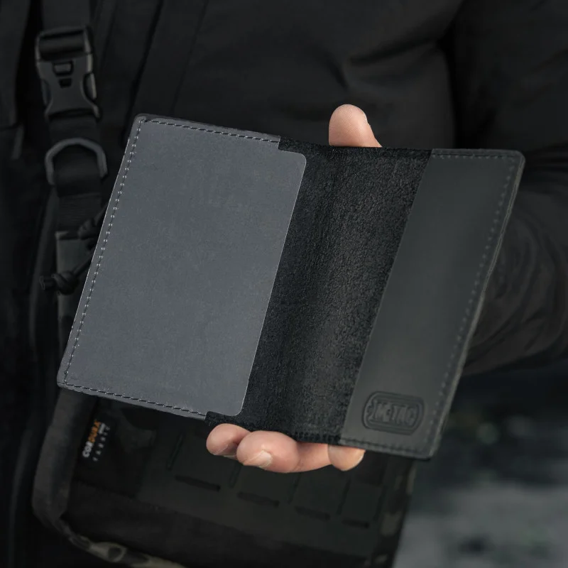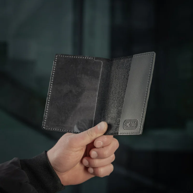 Обкладинка виготовлена з натуральної шкіри. Цей матеріал, часто використовується для виготовлення гаманців, обкладинок та картхолдерів, адже володіє винятковою стійкістю до стирання, міцністю та довговічністю. Метод нанесення малюнків та написів - тиснення.