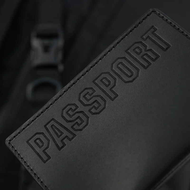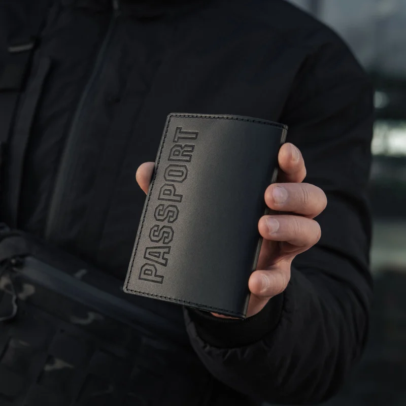 На фронтальній частині обкладинки розташований напис “UKRAINE”, зображений тризуб та відтворені орнаменти вишивки, що виступають символами незламності та єдності українського народу. На зворотній стороні обкладинки розміщений вертикальний напис «Passport». Всередині передбачені відсіки для зручного розміщення Вашого документа та стильний логотип бренду.