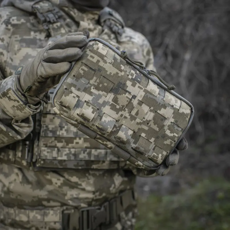Нова версія адміністративного підсумка Admin Large Elite Gen.II від бренду М-Тас відмінно доповнить Ваш індивідуальний комплект спорядження. Дана модель призначена для можливого розміщення планшета, документів, мобільного телефону, ключів, ліхтарика, карт та багатьох інших речей.