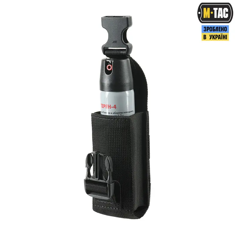 Засіб самооборони фіксується у вертикальному положенні та легко витягується. Також підсумок можна відрегулювати під потрібний розмір газового балончика. Виріб кріпиться на пояс або спорядження за допомогою молле інтерфейсу та разом із газовим балончиком додасть Вам відчуття впевненості й захищеності.