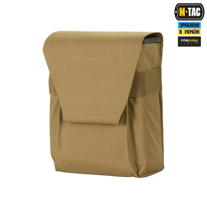 Короб надійно фіксується еластичною резинкою та кришкою-клапаном на велкро липучці. Всередині підсумка дизайнери бренду передбачили спеціальні нейлонові стропи по боках, щоб короб легко вилучався. Кріпиться до спорядження за допомогою MOLLE інтерфейсу, виконаного по технології Laser Cut.