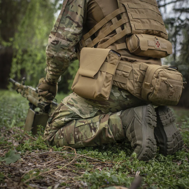 Матеріал виготовлення: Cordura 500D та Cordura Squadron – надзвичайно міцні матеріали, стійкі до впливу ультрафіолету, деформації та стирання. Cordura широко застосовується у виробництві тактичного спорядження, оскільки витримує велике навантаження на розрив, не змінює форму після впливу вологи та розрахована на інтенсивну експлуатацію у польових умовах.