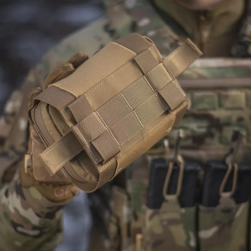 Тактичний підсумок від вітчизняного бренду M-TAC стане незамінним при наданні першої медичної допомоги. Складається з двох частин: сумки з внутрішнім органайзером під IFAK (індивідуальну аптечку першої допомоги) та бази, яка кріпиться на спорядження, і в яку вкладається сама сумка.