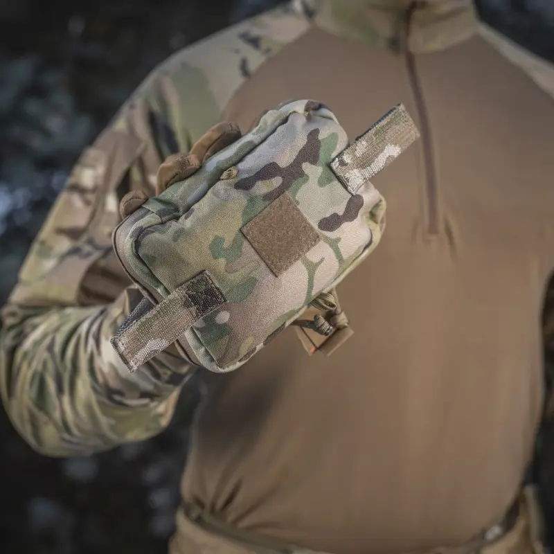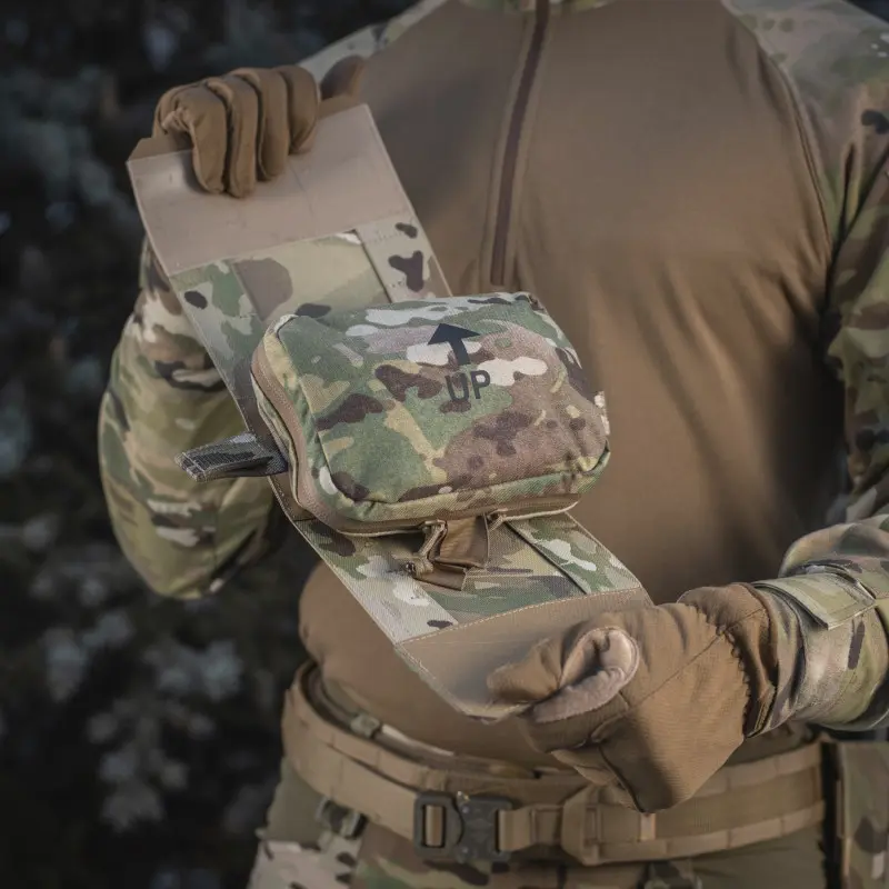 Тактичний підсумок від вітчизняного бренду M-TAC стане незамінним при наданні першої медичної допомоги. Складається з двох частин: сумки з внутрішнім органайзером під IFAK (індивідуальну аптечку першої допомоги) та бази, яка кріпиться на спорядження, і в яку вкладається сама сумка.