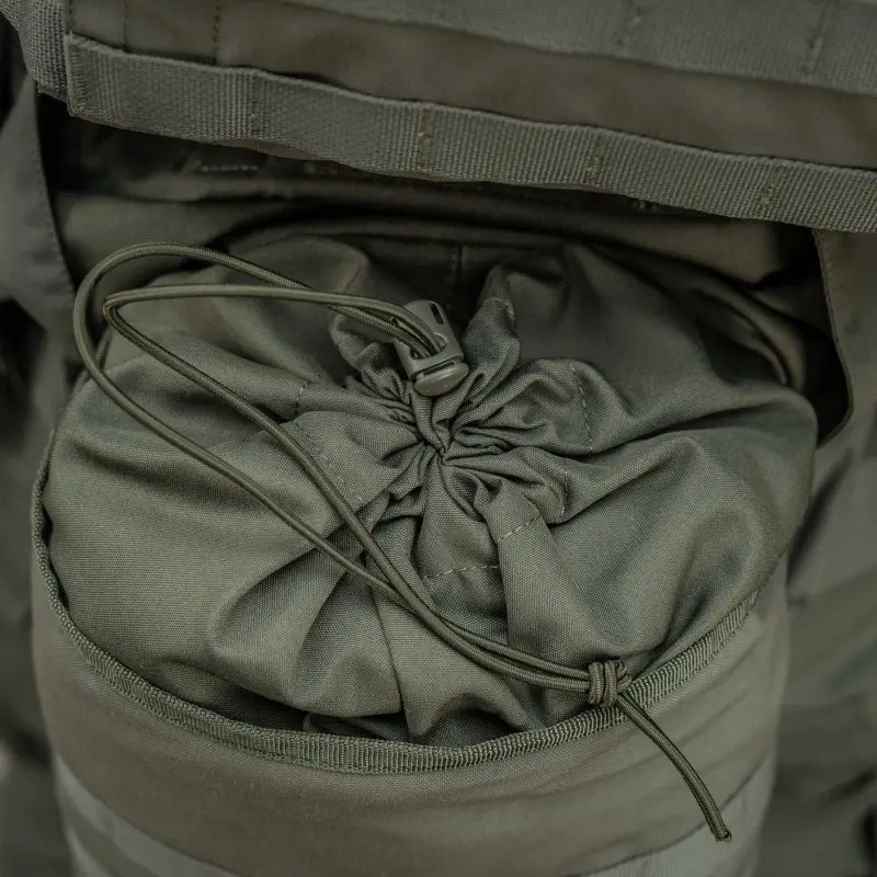 Для підвищення функціональності підсумка на фронтальній частині “Сухарки” конструктори бренду М-ТАС передбачили стропи MOLLE, які в разі потреби дозволять прикріпити додаткове спорядження.
