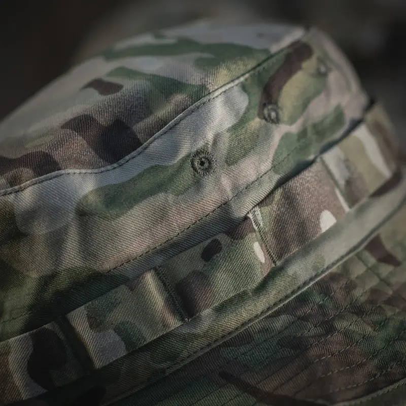 Армійська панама від бренду M-Tac зроблена за зразком легендарної американської моделі Boonie. Має крій з напівжорсткими полями. Тулія з нашитою по периметру стрічкою, яка розрахована на кріплення додаткових засобів маскування. Оснащена спеціальним шнуром, що не дозволить панамі злетіти з голови під час сильних поривів вітру.