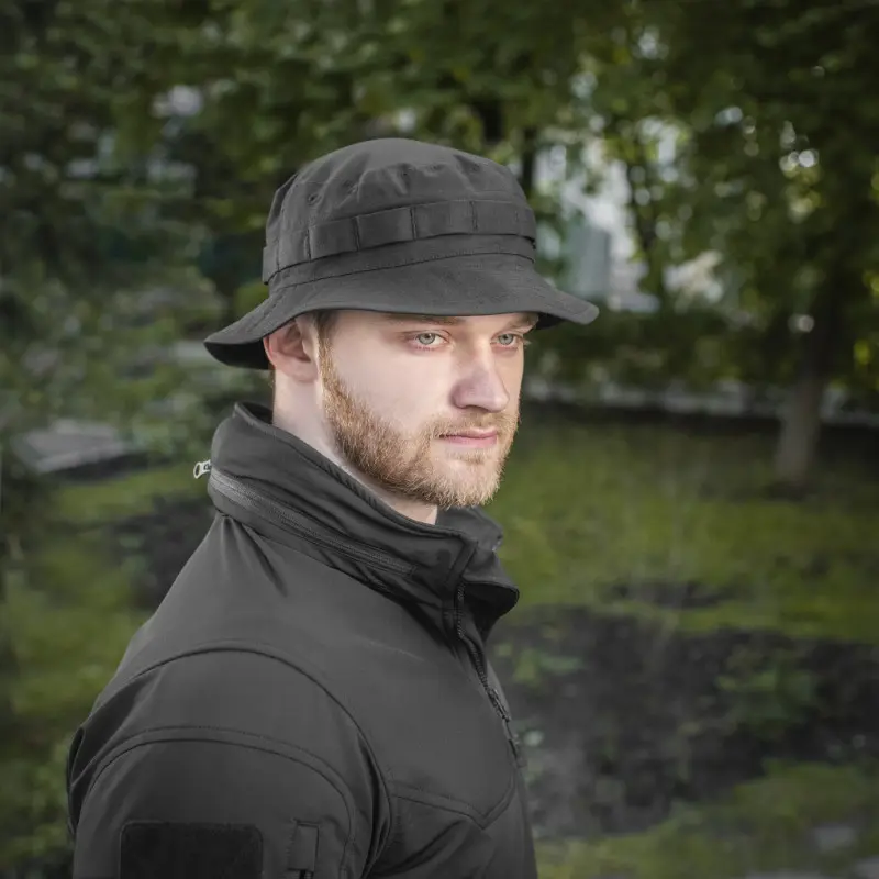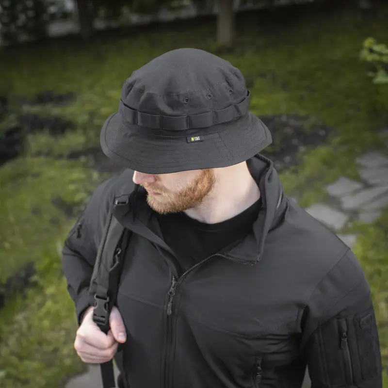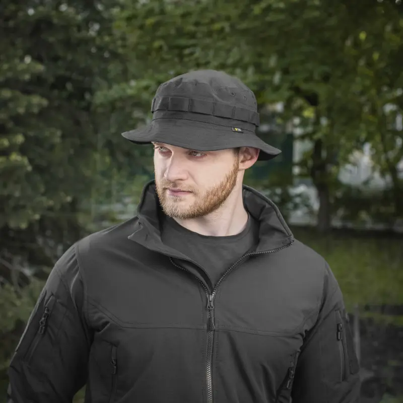 Армійська панама від бренду M-Tac зроблена за зразком легендарної американської моделі Boonie. Має крій з напівжорсткими полями. Тулія з нашитою по периметру стрічкою, яка розрахована на кріплення додаткових засобів маскування. Забезпечена спеціальним шнуром, що не дозволить панамі злетіти з голови під час сильних поривів вітру. Також вона має три вбудованих люверси, які забезпечують відмінну вентиляцію. Панама пошита з міцної та якісної тканини ріп-стоп (63% бавовна, 35% поліестер, 2% спандекс). З вивороту всі шви приховані. Такий спосіб обробки швів робить панаму більш комфортною при тривалому носінні, а також підвищує її стійкість до зношування.
