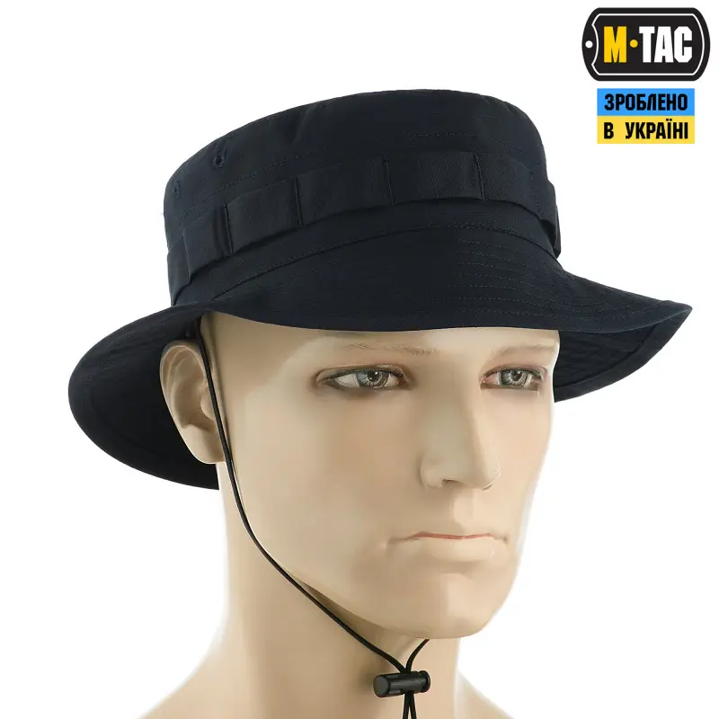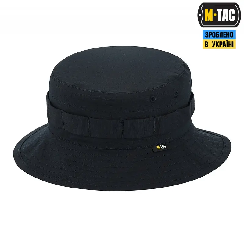 Армійська панама від бренду M-Tac зроблена за зразком легендарної американської моделі Boonie. Має крій з напівжорсткими полями. Тулія з нашитою по периметру стрічкою, яка розрахована на кріплення додаткових засобів маскування. Забезпечена спеціальним шнуром, що не дозволить панамі злетіти з голови під час сильних поривів вітру. Також вона має три вбудованих люверси, які забезпечують відмінну вентиляцію. Панама пошита з міцної та якісної тканини ріп-стоп (63% бавовна, 35% поліестер, 2% спандекс). З вивороту всі шви приховані. Такий спосіб обробки швів робить панаму більш комфортною при тривалому носінні, а також підвищує її стійкість до зношування.