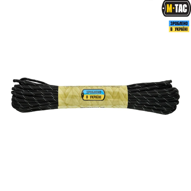 М-Tac паракорд Reflective Traser - це нейлоновий шнур, що складається з зовнішнього обплетення (велика кількість переплетених волокон) і сердечника (кілька нейлонових ниток, переплетених між собою), що забезпечують його міцність і невелику вагу.Паракорд або корд (англ. Paracord, cord, parachute cord) - парашутний шнур, походить від парашутних строп, які активно використовували парашутисти після десантування під час Другої світової війни. Через свої універсальні характеристики (легкий, гнучкий, міцний, багатоцільовий) паракорд набув поширення як серед військових, так і серед цивільних. Паракорд використовувався навіть астронавтами, як багатоцільовий шнур під час місії STS-82 для ремонту телескопа.