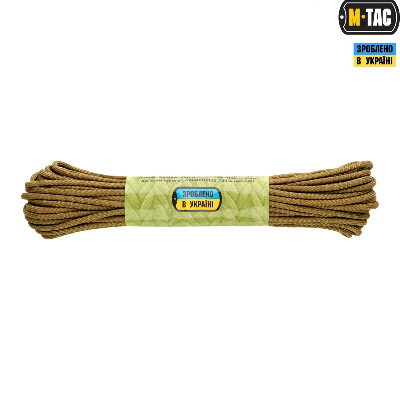 Паракорд (англ. Parachute cord, paracord, 550 cord) — лёгкий нейлоновый трос с сердечником, который изначально использовался в стропах американских парашютов во время Второй мировой войны. После десантирования парашютисты использовали стропы для решения различных задач. Сейчас паракорд используется в качестве универсального троса, как военными, так и гражданскими. Этим многоцелевым тросом даже пользовались астронавты во время миссии STS-82, второго полёта Шаттла для ремонта телескопа Хаббл. Если мы говорим о паракорде от M-Tac паракорд Survival, то это более продвинутый шнур чем простая стропа для паршюта. M-Tac паракорд Survival это нейлоновый шнур, состоящий из внешнего оплетки (большое количество переплетенных волокон) и сердечника (несколько нейлоновых нитей, переплетенных между собой), что обеспечивает его прочность и небольшой вес. Начинка модели SURVIVAL это 7 полиамидных нитей (550-paracord) а также джут и плетеный рыболовный шнур. Для данного типа паракорда, была подобрана соответствующая современная герметичная упаковка с многоразовым клапаном - Doy-Pack. Благодаря этому джут, находящийся под оплеткой даже в самых влажных погодных условиях останется пригоден для использования при добыче огня. Паракорд можно применять в самых разных областях как армейской так и гражданской жизни Одежда / снаряжение - для ремонта одежды и снаряжения: сшить нитками с сердечника, затянуть / связать шнуром части, разошлись; - паракорд заменит ремень или можно сделать подтяжки для штанов; как крепкие шнурки для обуви; - если сломалась молния на одежде или снаряжении - можно затянуть / связать паракорд; - как карабины, лямки, петли или крепления к снаряжению, например, чтобы распределить вес груза; - чтобы натянуть палатку, брезент, плащ палатку, пончо; закрепить камуфляж, маскировочную сетку; как ремень для автомата и другого оружия; - как веревка для сушки одежды и снаряжения; - для оплетки рукоятки ножа, сделать темляк для ножа; - как замена альпинистской веревки для спусков и подъемов. Но нужно помнить, что паракорд выдерживает статическую (без рывков) нагрузки, а не большие рывки как, например при падении. Спускаться нужно медленно и плавно, паракорд желательно связать в несколько шнуров; - как трос для поднятия грузов на высоту; - как замена страховочной троса: привязаться к напарнику, паракорд желательно связать в несколько шнуров; как поводок при переходе ночью: привязаться к напарнику; - как шнур для растяжки или для сигнализации сделать «кошку» для разминирования; Рыбалка нити с сердечника используются как леска (леска) для рыбалки; - нити с сердечника для плетения сетки - для переноса или сушки рыбы: протянуть шнур через жабры; - привязать / пришвартовать лодку, Техника: - как запасной буксировочный трос: паракорд в один шнур выдерживает нагрузку 250 кг, связать в 5 шнуров - нагрузка больше 1 тонны; - крепление груза и снаряжения к автомобилям, лодок, военной техники; - ремонт техники: например, натянутый паракорд с узлами - замена ремней вентилятора; На природе - как связка вместо гвоздей при построении хранилища; - сплести гамак; сделать ловушку (наложить) для животных; - связать бревна для плота; сделать снегоступы из веток; - сделать лук для разжигания огня трением; - сохранить припасы еды от животных и насекомых - подвесить их; И еще много другого. В упаковке M-Tac паракорд Survival идет 15 метр