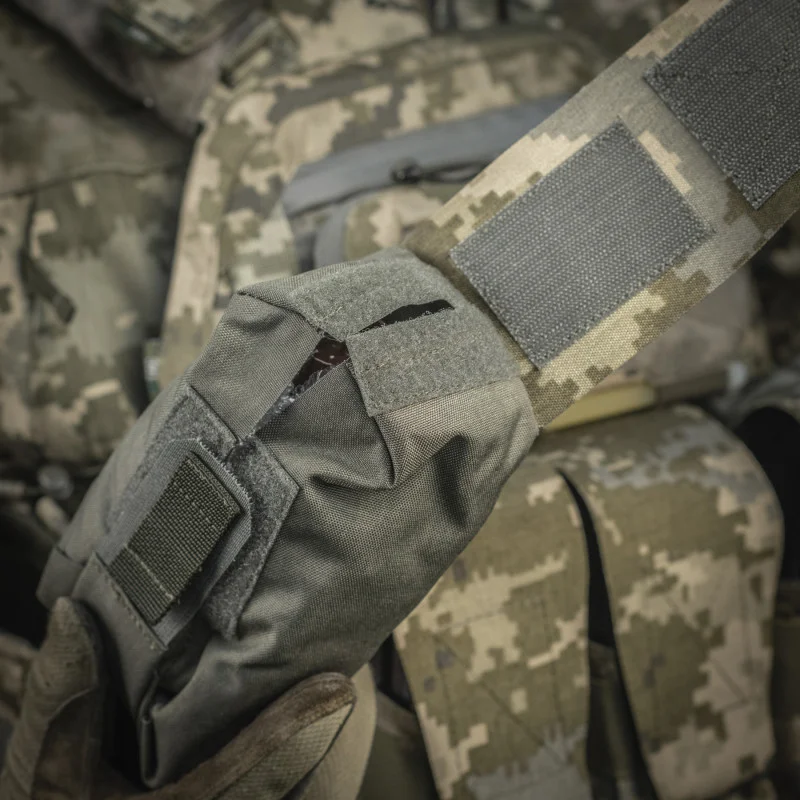 Зовнішній підсумок виготовлений із Cordura 500D – міцного матеріалу, стійкого до стирання та високих навантажень. Внутрішні бічні стінки обладнані нейлоновою стропою, завдяки якій підсумок тримає форму. Додатковим фіксуючим елементом є стяжка, що дає змогу надійно утримувати аптечку навіть при активних рухах. Кріпиться до спорядження за допомогою MOLLE інтерфейсу, виконаного за технологією Laser Cut.