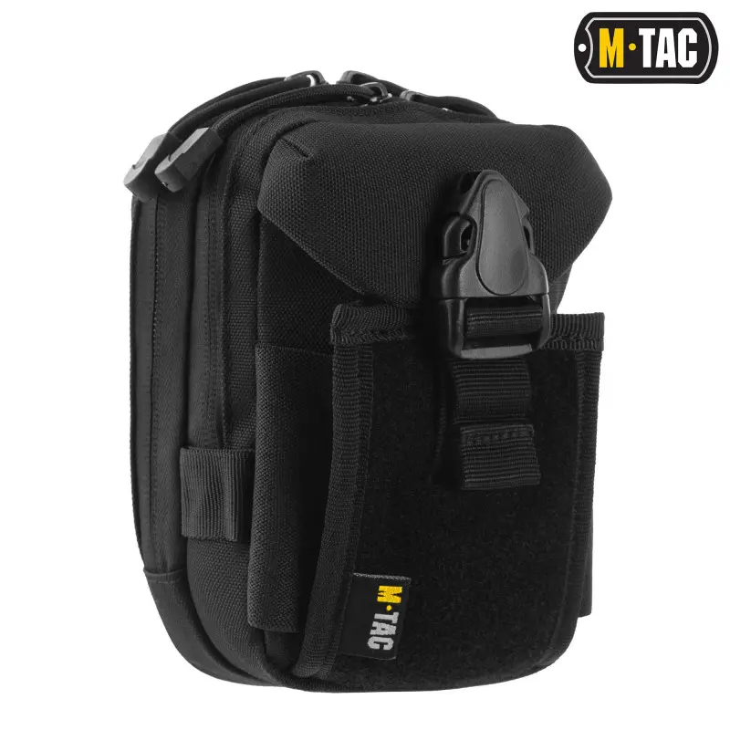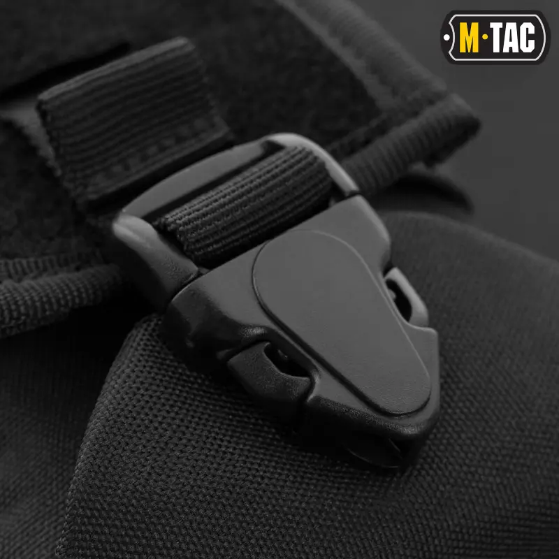 Невеликий утилітарний Підсумок M-Tac Large Utility Pouch Elite Black призначений для кріплення на поясний ремінь або на MOLLE платформи. У підсумка три відділення: велике і середнє закриваються на блискавки з замками, на які встановлені паракордові пуллери, для спрощення відкриття і закриття. Всередині кожного з цих відділень є кишеня з еластичною окантовкою.