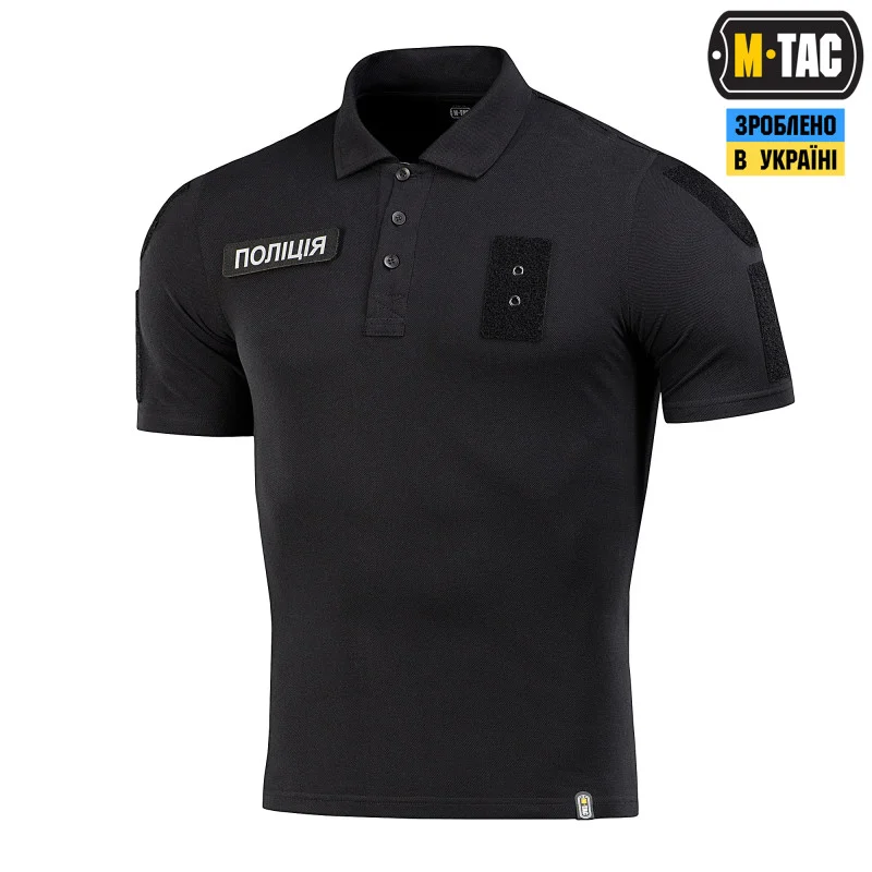 M-Tac поло Поліція 65/35 Black зі світловідбиваючими елементами - трансфером на спинці і патчем "Поліція" на грудях. Сорочки-поло стали широко використовуватися в якості форменого одягу, і M-Tac випустив свій варіант, який максимально адаптований до використання в правоохоронних структурах.