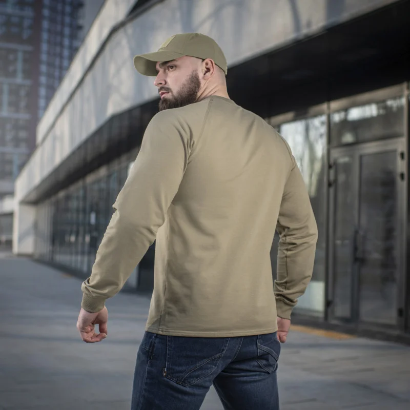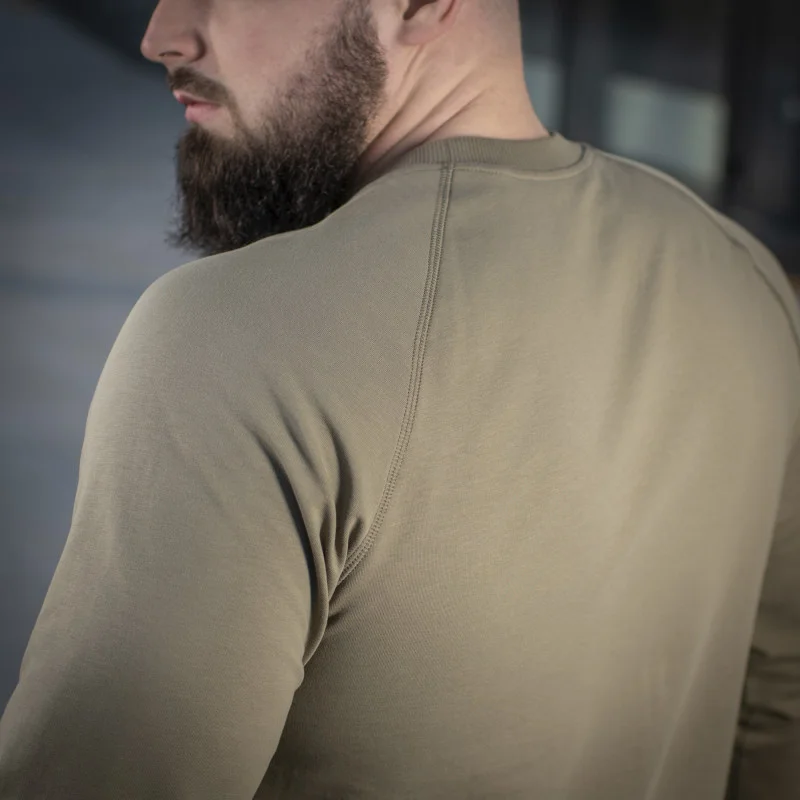 M-Tac реглан Athlete з круглим вирізом виконаний у мінімалістичному дизайні та призначений для щоденного носіння. Пошитий з якісної, зносостійкої тканини: 95% бавовна, 5% еластан. Цей матеріал приємний до тіла, не кошлатиться і не втрачає форму після прання. Манжети і горловина виконані з еластичної резинки. Класичний прямий крій не обмежує рухів і забезпечує комфорт. Цей виріб можна комбінувати з різними стилями і носити практично цілий рік.