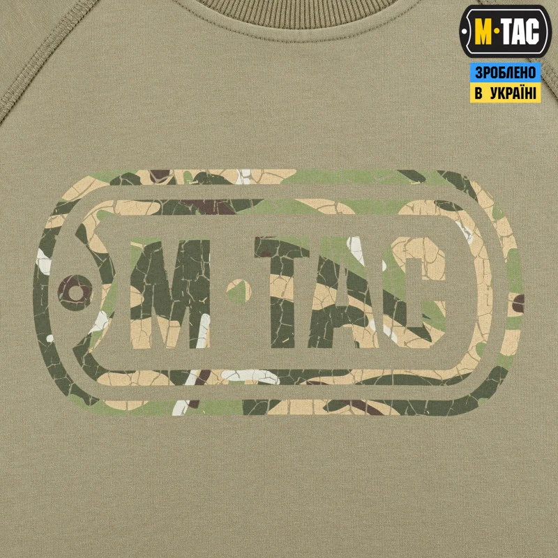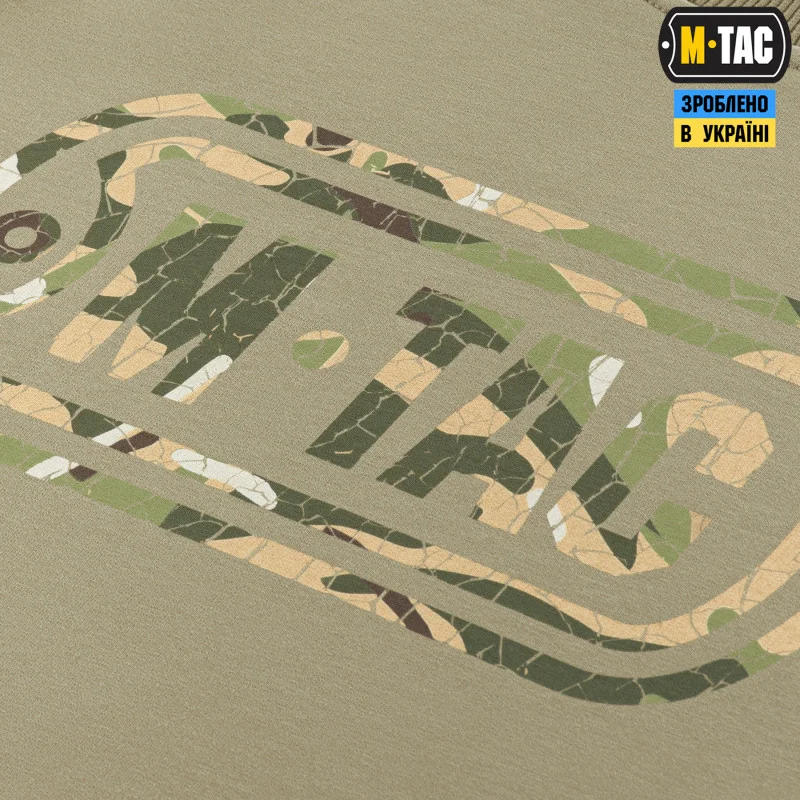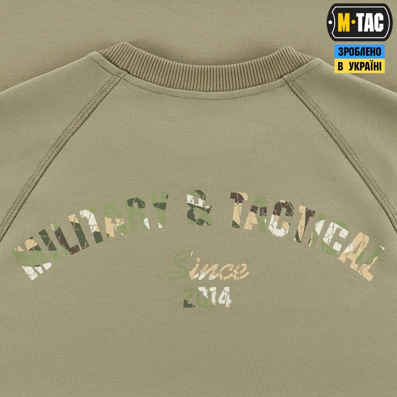 На спині реглана розміщений стилізований камуфляжний напис Military&Tactical Since 2014. Саме під час Революції Гідності народилась ідея створення українського бренду з пошиття та виготовлення тактичного одягу для військових і спецпризначенців. З того часу бренд активно розвивається, а одяг та спорядження від М-Тас вже неодноразово пройшли перевірку найгарячішими військовими конфліктами сьогодення.