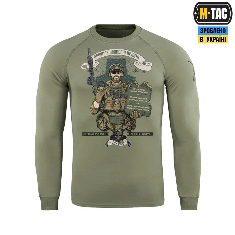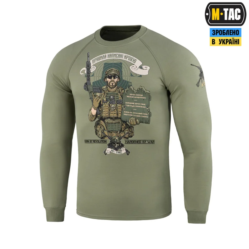 Сьогодні багато майбутніх захисників України проходять вишколи на полігонах та навчання з використання вогнепальної зброї. Кожен з них має усвідомлювати, що у поводженні зі зброєю є червоні лінії, які не можна перетинати. Саме ця важлива тема, спонукала дизайнерів бренду М-Тас на створення нового реглану, присвяченого стрільцям та їх основним, непорушним заповідям.