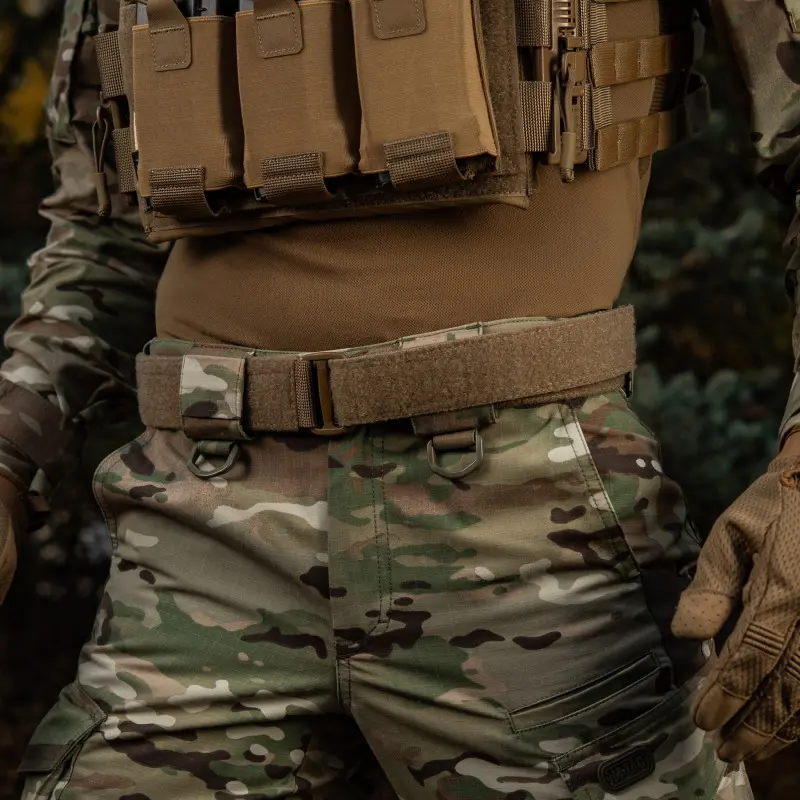 Зовнішній ремінь складається з нейлонових строп (50 мм), між якими вшитий високотехнологічний термопластичний композит Tegris, що надає жорсткості. Революційний матеріал Tegris від компанії Milliken® (США) має меншу вагу, ніж традиційні термопластичні композити, але при цьому здатний витримувати велике навантаження. Внутрішня сторона складається з пластикових велкро гачків для фіксації з внутрішнім ременем і не так сильно обсипається в порівнянні з текстильною. Завдяки жорсткій конструкції, правильно відрегульований ремінь не спаде і не буде зісковзувати під час активних фізичних навантажень або в умовах бою.