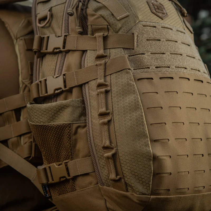 Виготовлений з Cordura Hex 1000D і Cordura 1000D – якісних і зносостійких матеріалів, що забезпечують захист від механічних пошкоджень і довгий термін експлуатації. Спереду рюкзак оснащений системою MOLLE LASER CUT, що дозволить при необхідності збільшити його обєм додатковими підсумками.