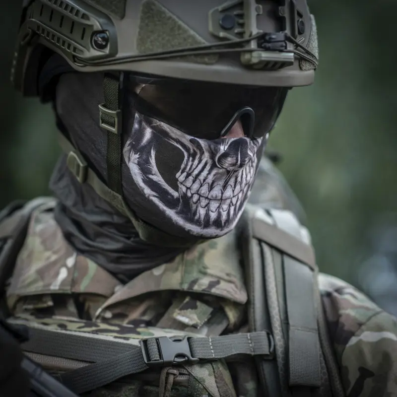 Багатофункціональна бандана Reaper Skull, вона ж Multi-Wrap, і вона ж Recon Wrap – це ще один багатофункціональний аксесуар від бренду M-Tac. Виріб виконаний у формі труби з тонкої трикотажної тканини (100% поліестер), яка шляхом нехитрих махінацій може перетворюватися в підшоломник, балаклаву, бандану-сахару, одношарову і двошарову шапку, пилозахисну маску, шарф і потопоглинаючу повязку. Легко тягнеться. Швидко сохне. У складеному вигляді майже не займає місця. Річ однаково корисна як для страйкболу, походів, вело і мотоспорту. Використовується військовими по всьому світу.