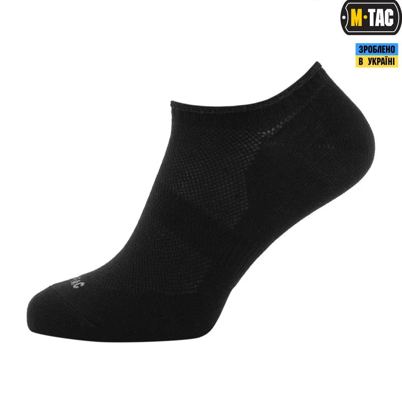 Укорочені шкарпетки M-Tac розроблені спеціально для бігу, також відмінно підходять для всіх інших видів активного спорту і відпочинку в жарку пору року. Забезпечать максимальний комфорт спортсмену, тонкі еластичні манжети щільно облягають щиколотку (не передавлюючи), а ергономічно розміщені точки тиску забезпечують оптимальну посадку і комфорт, шкарпетки не сповзають з ноги. Тканина з якої вони виготовлені забезпечує відмінну вентиляцію.