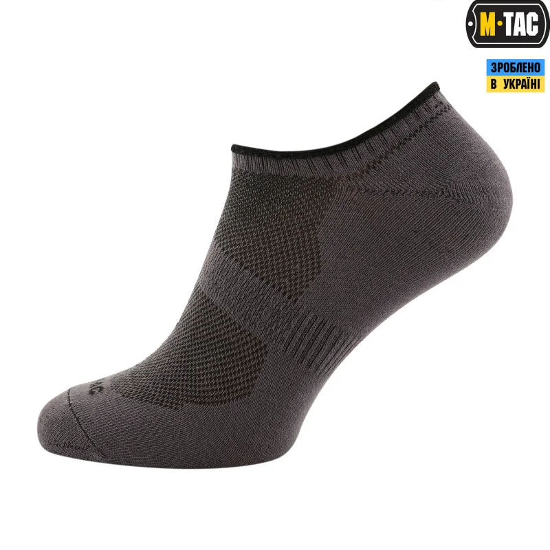 Укорочені шкарпетки M-Tac розроблені спеціально для бігу, також відмінно підходять для всіх інших видів активного спорту і відпочинку в жарку пору року. Забезпечать максимальний комфорт спортсмену, тонкі еластичні манжети щільно облягають щиколотку (не передавлюючи), а ергономічно розміщені точки тиску забезпечують оптимальну посадку і комфорт, шкарпетки не сповзають з ноги. Тканина з якої вони виготовлені забезпечує відмінну вентиляцію.