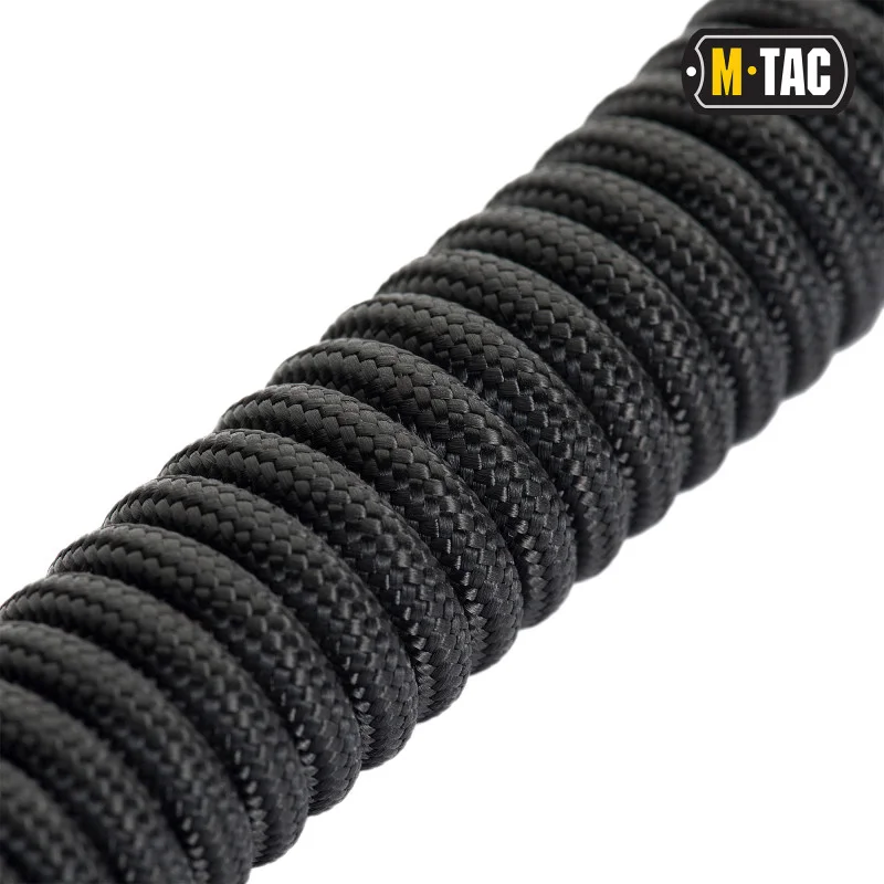 Шнур страхувальний пістолетний спіральний M-Tac призначений для зниження ризику втрачання зброї або заволодіння нею третіми особами. Кріплення предметів до даного шнура здійснюється за допомогою карабіна. Страхувальна пружина або страхувальний шнур, дуже необхідний як в туризмі так і працівникам правоохоронних органів або співробітникам охоронних структур. Даний шнур запобігає втраті особистих речей, чи то ліхтарик, чи ніж або рація а також запобігає вилученню короткоствольної вогнепальної зброї. Додавання D-кільця з системою кріплення MOLLE дозволяє кріпити даний страхувальний шнур на більшості сучасних розвантажувальних систем, а також більшості поясів.