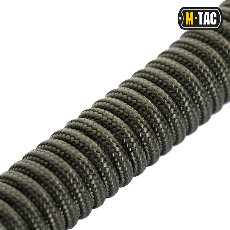 Шнур страхувальний пістолетний спіральний M-Tac призначений для зниження ризику втрачання зброї або заволодіння нею третіми особами. Кріплення предметів до даного шнура здійснюється за допомогою карабіна. Страхувальна пружина або страхувальний шнур, дуже необхідний як в туризмі так і працівникам правоохоронних органів або співробітникам охоронних структур. Даний шнур запобігає втраті особистих речей, чи то ліхтарик, чи ніж або рація а також запобігає вилученню короткоствольної вогнепальної зброї. Додавання D-кільця з системою кріплення MOLLE дозволяє кріпити даний страхувальний шнур на більшості сучасних розвантажувальних систем, а також більшості поясів.