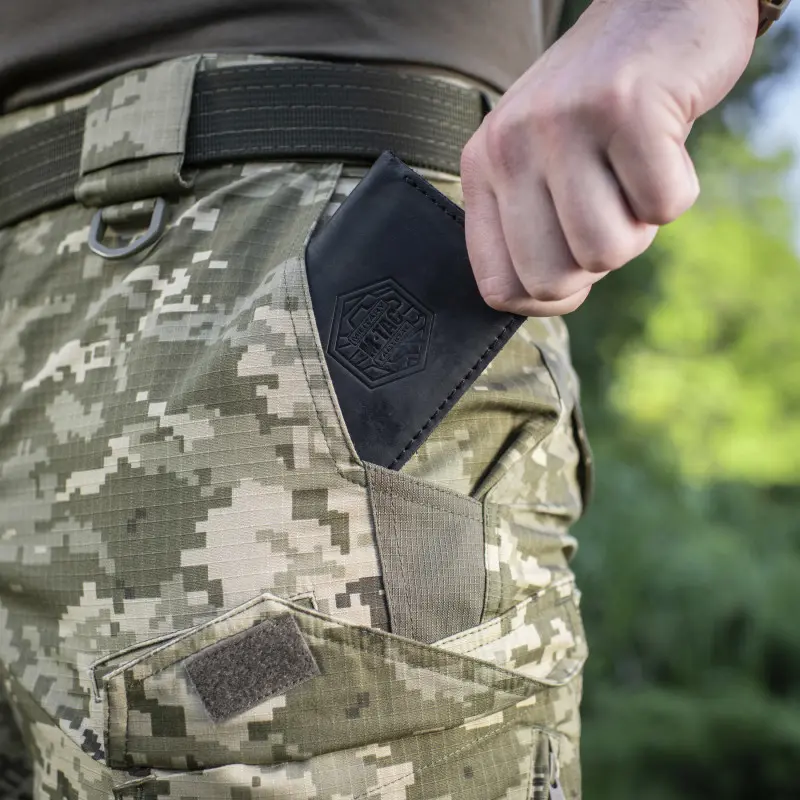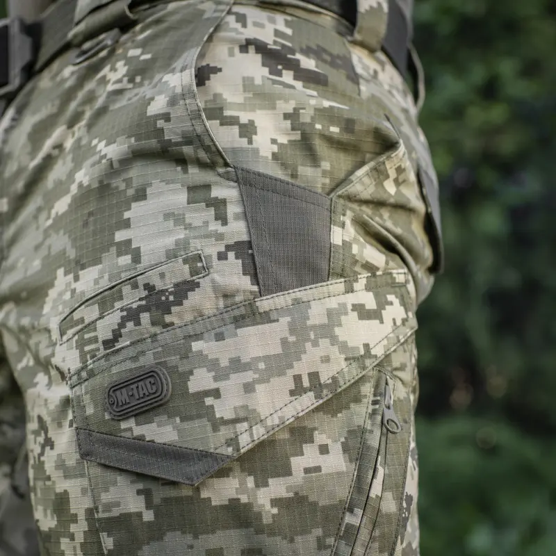 Кишені: | -2 бічні брючні кишені (з посиленням у нижній частині, призначені для кріплення ножа) - 2 набедренні "карго" кишені з асиметричним клапаном на липучці - 1 фронтальна кишеня ліворуч під телефон/блокнот -2 задні кишені |
