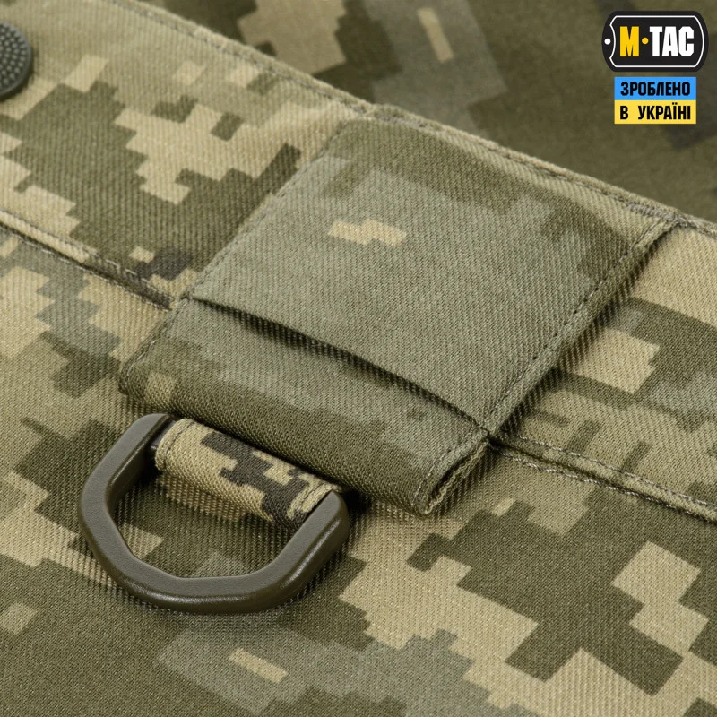Бічні карго-кишені обладнані асиметричним клапаном на велкро, який спрощує доступ руки в кишеню, але не дозволяє вмісту висипатися, навіть якщо ви активно рухаєтеся. Розширювальна складка на карго-кишені - це одночасно і декоративний, і функціональний елемент. Вона дозволяє за необхідності збільшувати внутрішній обєм кишені для перенесення габаритних речей.