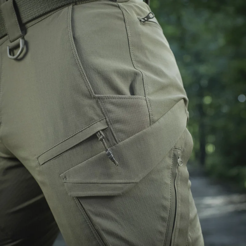 M-Tac шорти Aggressor Summer Flex Black можна використовувати як для тренувань, стрільбища, роботи, так і для ділової подорожі або прогулянки. Пошиті з легкої однотонної тканини Flex Rip-Stop: 93% нейлону, 7% еластану. Цей матеріал забезпечує вільну циркуляцію повітря, не парить і вкрай стійкий до вигоряння на сонці. Шорти мають еластичний "тунельний" пояс зі зручним регулюванням посадки і розраховані на носіння з ременем шириною до 5.5 сантиметрів. Спереду, нижче поясу, нашиті два D-кільця для кріплення різного спорядження. Якісна фурнітура від компанії YKK. Шорти мають 7 функціональних кишень для зручного розміщення необхідних речей. Широкі брючні кишені посилені спеціальними вставками і дозволяють прикріпити кліпсу складного ножа, тактичної ручки або ліхтарика. Бічні карго кишені обладнані асиметричним клапаном на велкро, який надійно захистить речі від випадання. Розширювальна складка дозволяє за необхідності збільшувати внутрішній обсяг кишені для перенесення габаритних речей. Додаткова врізна кишеня на блискавці відмінно підійде для мобільного телефону. Задні кишені також закриваються на блискавку і забезпечать збереження ваших речей. Завдяки продуманому крою шорти не обмежують свободу рухів: в них зручно стрибати, бігати, нахилятися, присідати та пересуватися по пересіченій місцевості. Вони легко можуть виконувати завдання як тактичного, так і повсякденного одягу.