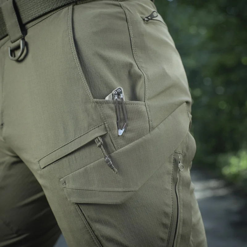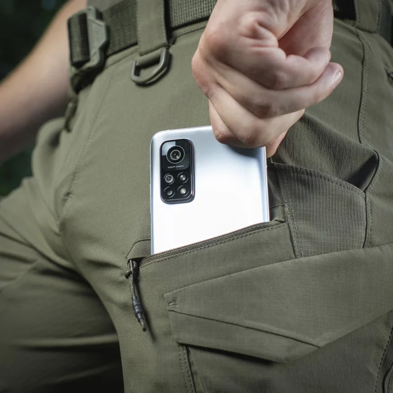 Кишені: | -2 бічні брючні кишені (з посиленням у нижній частині, призначені для кріплення ножа) - 2 набедренні "карго" кишені з асиметричним клапаном на липучці - 1 фронтальна кишеня ліворуч під телефон/блокнот -2 задні кишені |