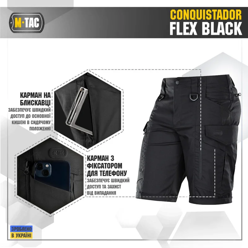 M-Tac шорти Conquistador Flex не обмежують свободу рухів і легко можуть виконувати як завдання тактичного одягу, так і повсякденного.